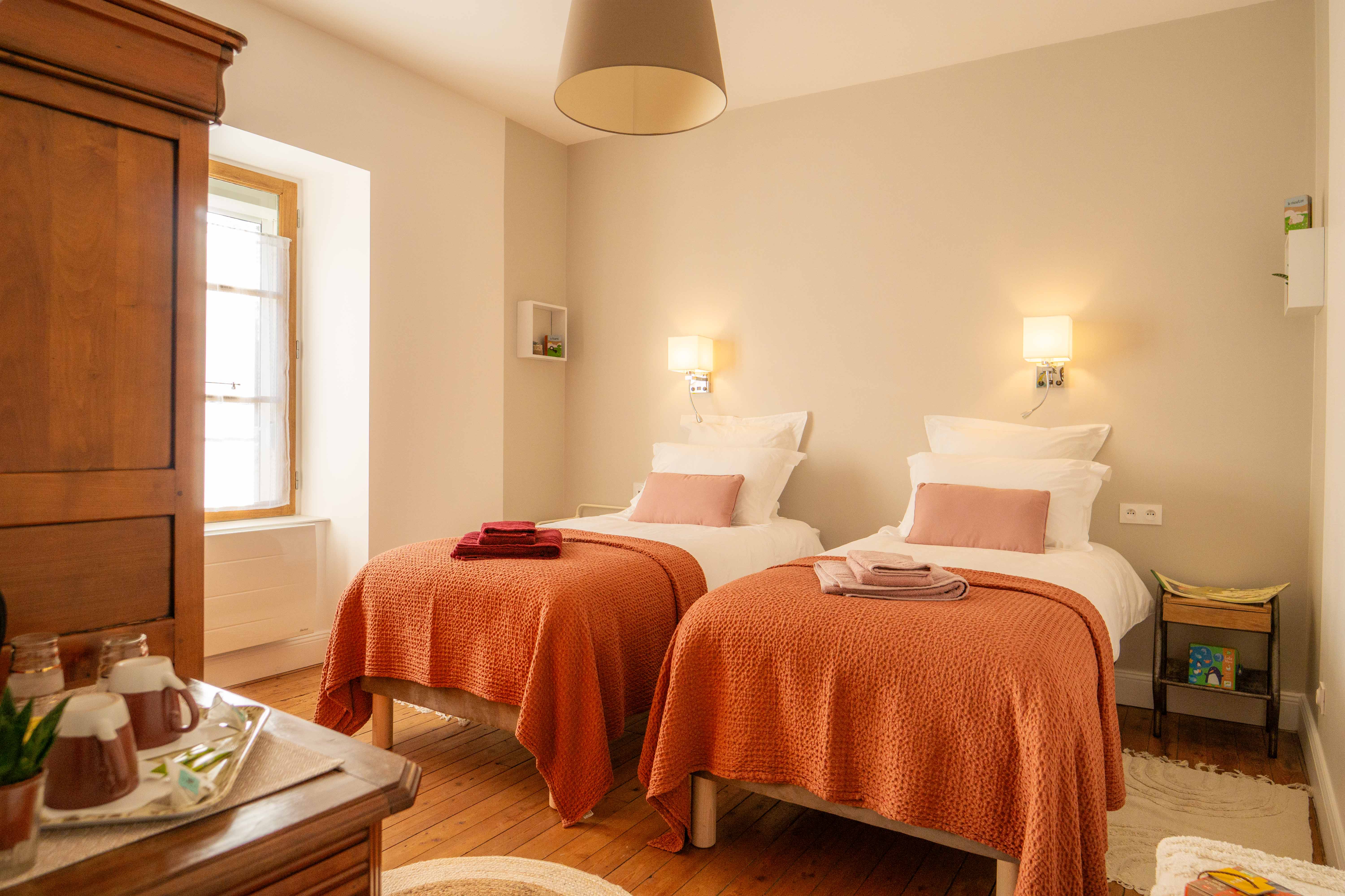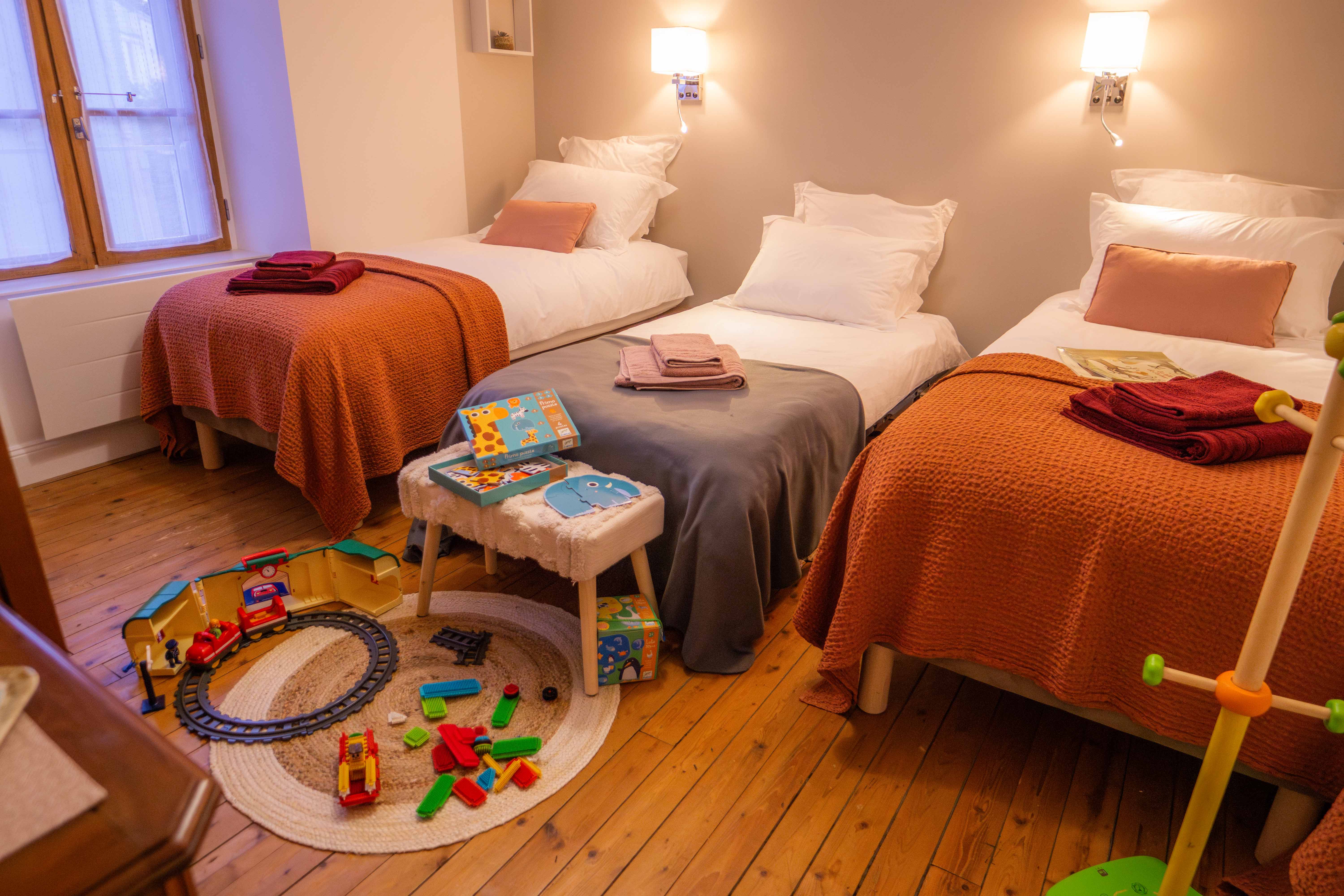 Pour les familles ou amis il y a la possibilté de privatiser l'espace "Toue" et "Plate" par une porte privée. Les chambres deviennent communiquantes pour le plaisir des enfants.
